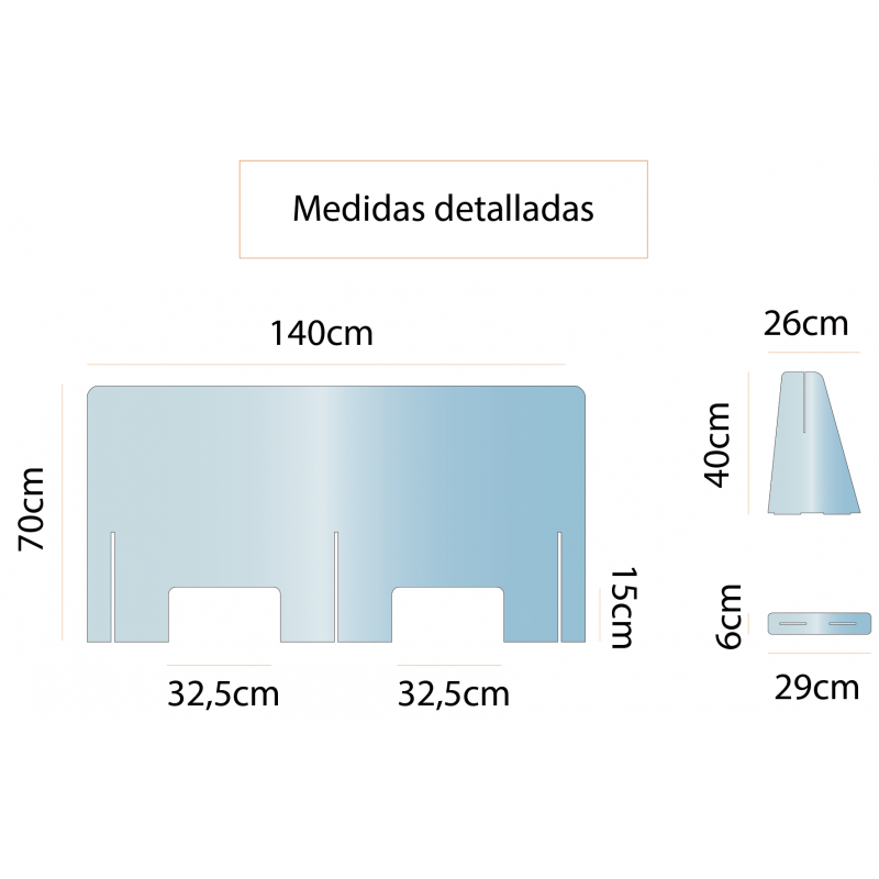 Mampara de protección fabricada en metacrilato transparente de 4mm. Ideal para separar cliente y dependiente, reduciendo así las posibilidad de contagios.