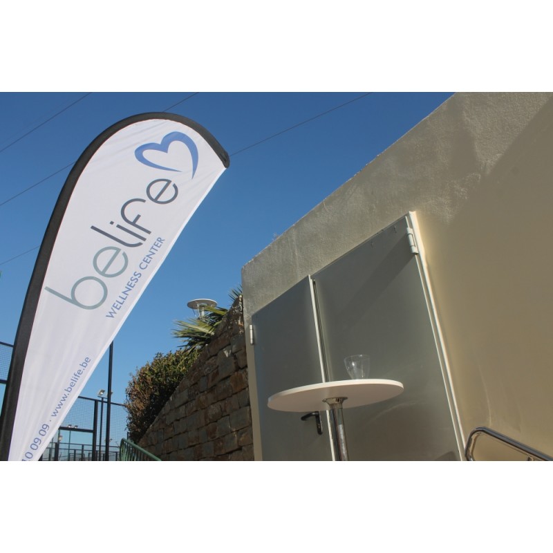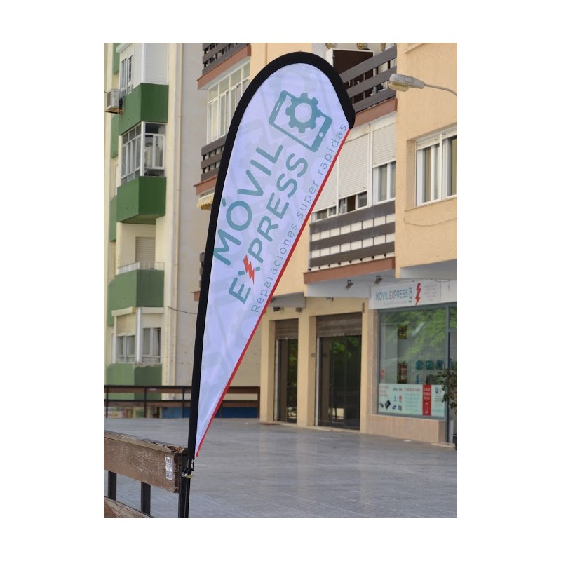 Banderola publicitaria fly banner lágrima o gota de tamaño estándar, perfecta para cualquier tipo de evento, feria, presentación, dar mayor visibilidad a su negocio, en definitiva, para cualquier tipo de publicidad.