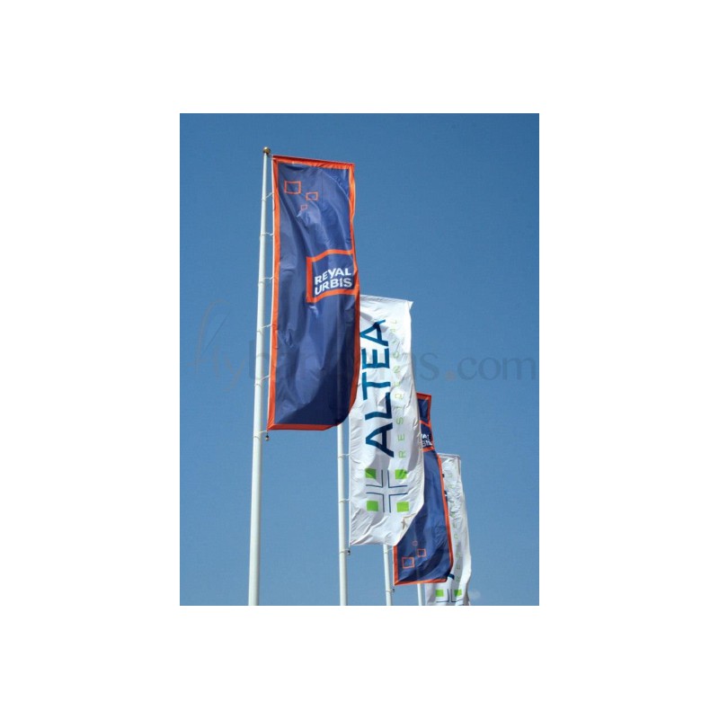 Gracias al sistema giratorio, la bandera soporta mejor las embestidas del viento, y también hace más llamativo el reclamo publicitario.